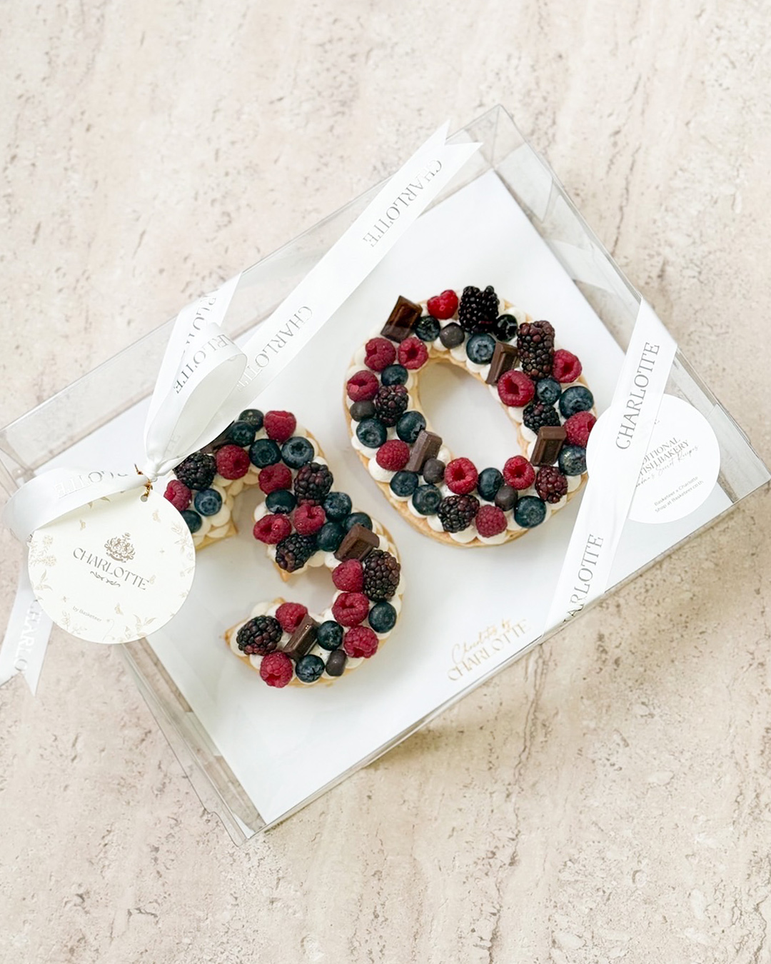 Personalised Number Pie Cake – Chocolate & Berry - Surprise your loved ones with a personalized number pie cake. Crafted from golden, flaky pastry and filled with smooth signature cream, each letter is custom-cut and topped with rich chocolate, fresh raspberries, blueberries, and seasonal fruits. A unique gift for birthdays, milestones, or special celebrations.